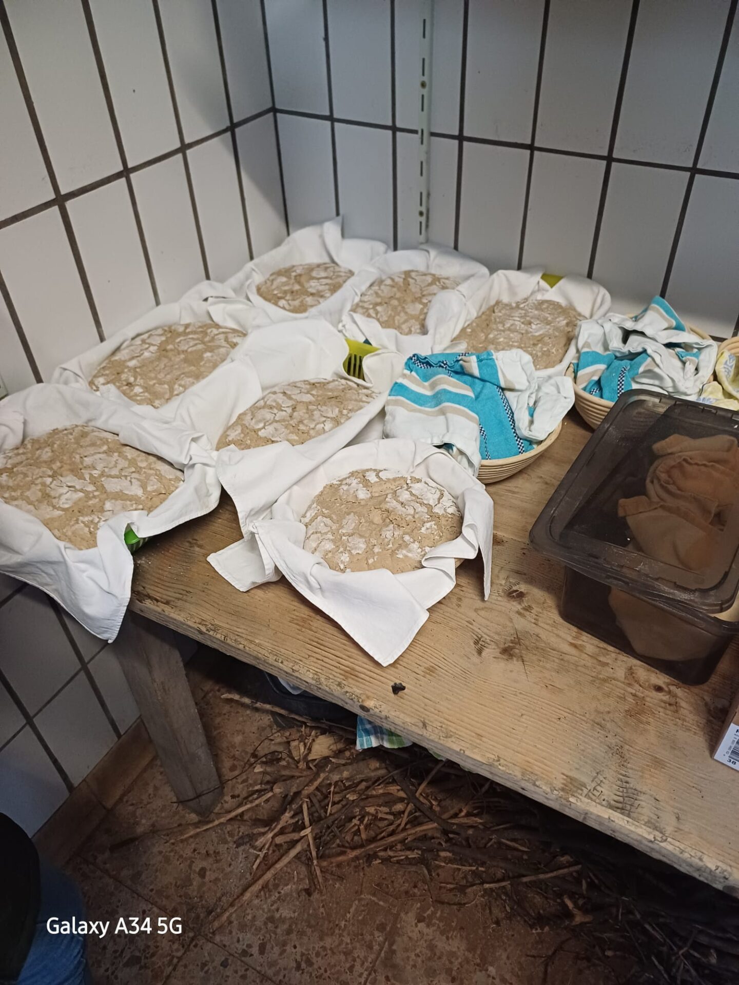 Dann wurde es ernst. Einige Tage vor dem Back-Event wurde mit der Herstellung des Sauerteiges begonnen. Aus erst noch kleinen Mengen wuchs im Laufe der Woche unser Sauerteig heran. Jetzt war auch klar, weshalb diese großen Teigwannen benötigt wurden.