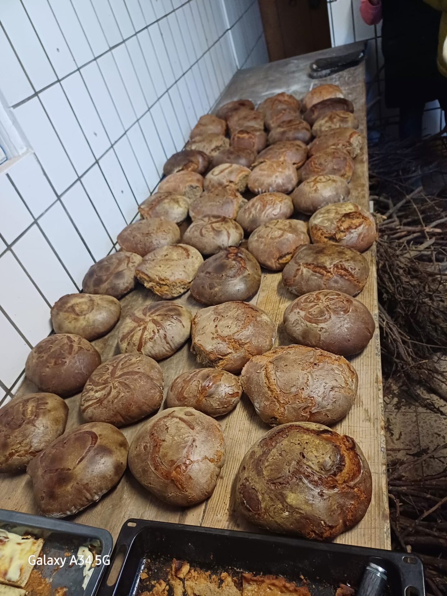Nachmittags waren wir dann mit dem zweiten Durchgang fertig, sodass sich jetzt dem gemütlichen Teil zugewandt werden konnte. Im Anschluss folgen den insgesamt rund 120 Broten noch ein Zuckerbrot, ein Schmandkuchen und drei Bleche Pizza. Einfach lecker!