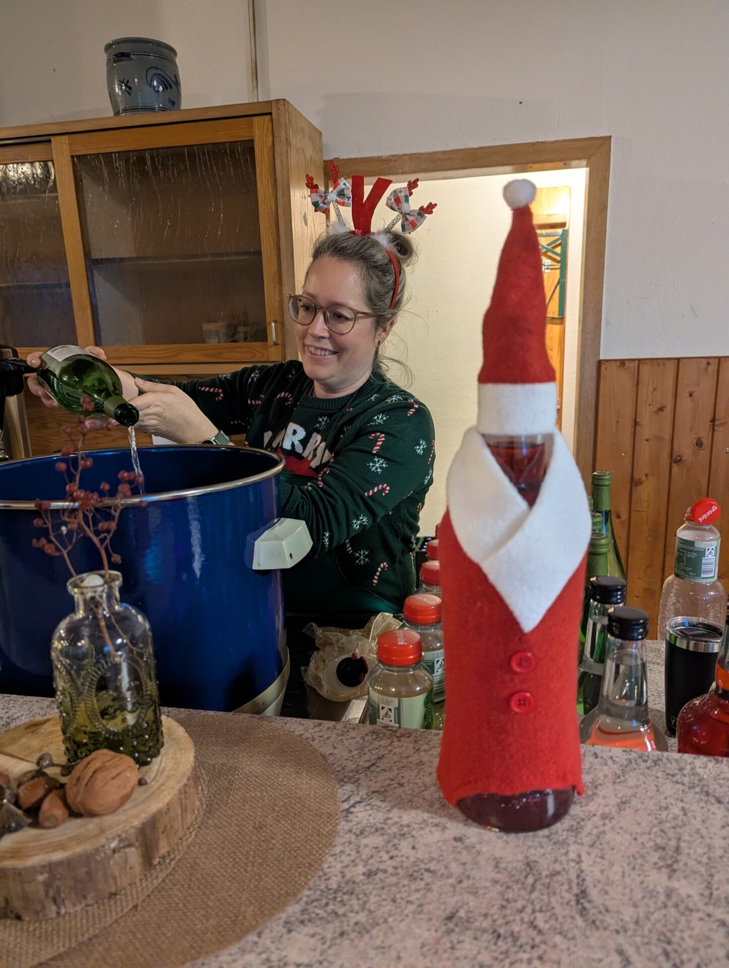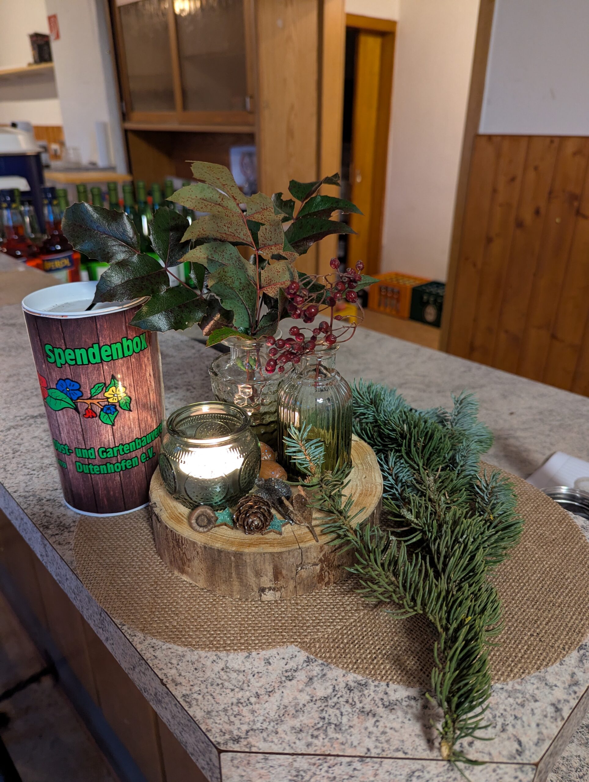 Zur Stärkung gab es „Heißen Riesling“ und „Äpplerol“ – ein neues Getränk mit Apfelwein und Aperol. Dieser sorgte dann auch umgehend für nette Gespräche und gute Laune. Außerdem konnte unser selbstgekelterter Apfelsaft erworben werden.